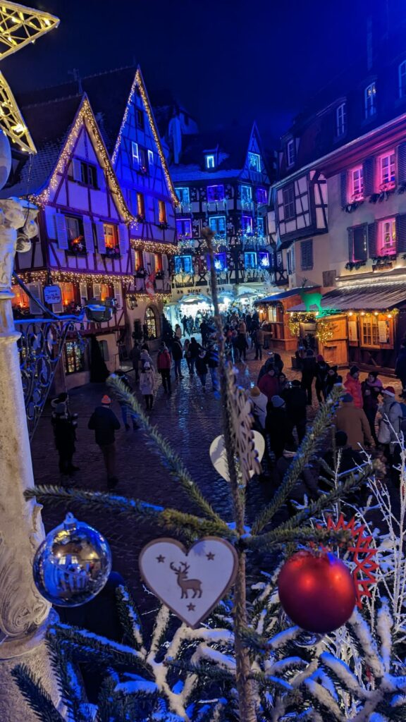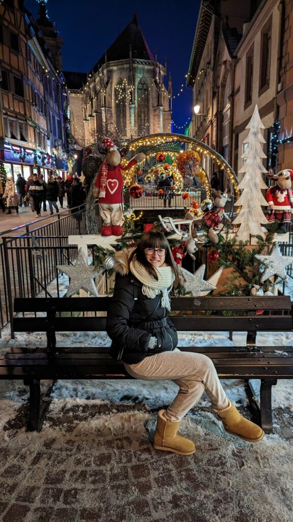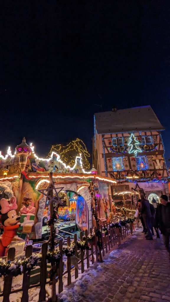 Terminamos nuestro paseo llevando a la Gran Roue de Colmar, una noria que hay muy cerca del centro, con lucecitas y también con un pequeño mercado navideño justo al lado.