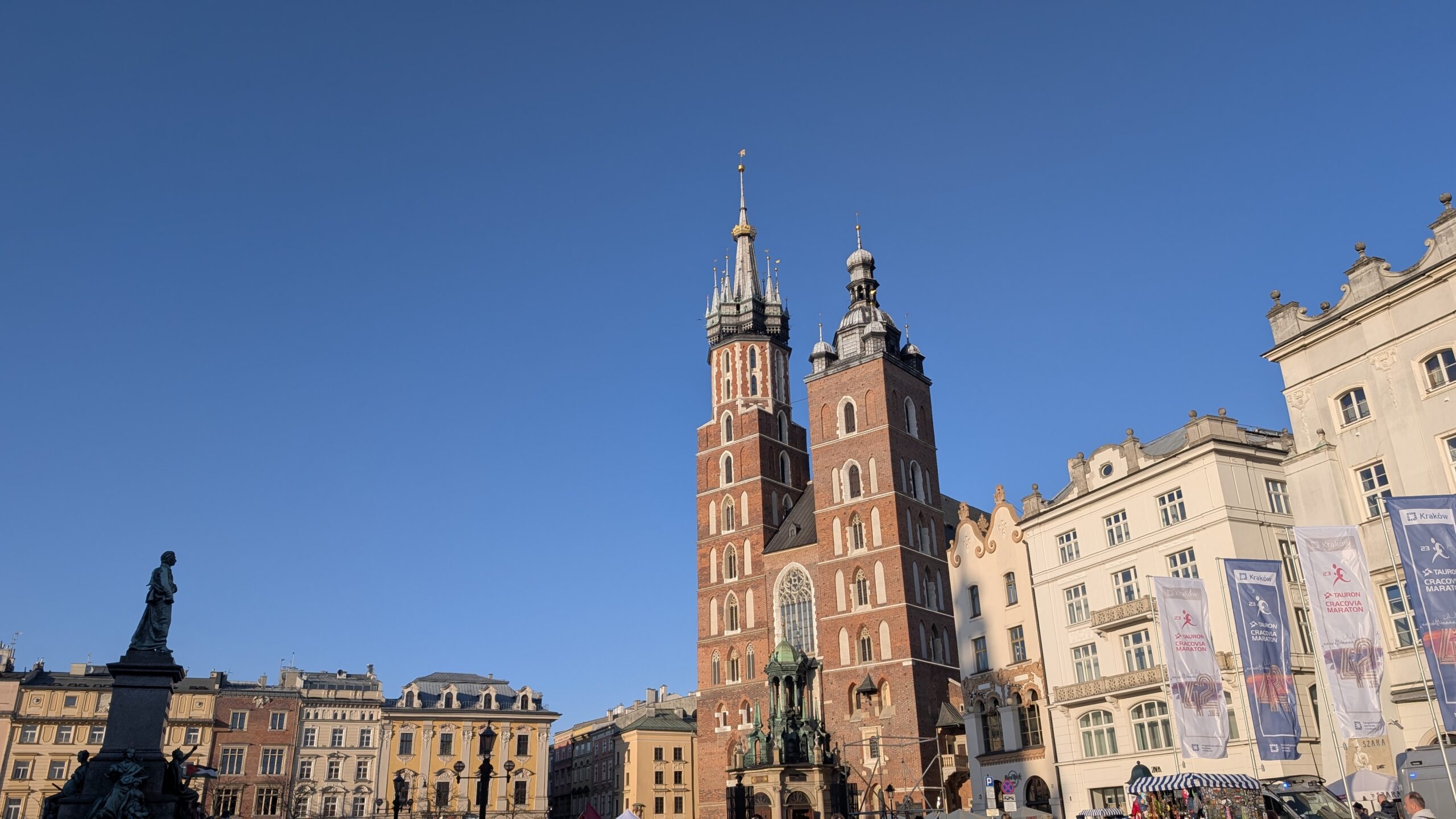 Por último, en una esquina de la plaza encontramos la Basílica de Santa María, que destaca por sus dos torres desiguales. Lo que la hace más curiosa, es que a cada hora en punto, desde una de las torres aparece un trompetista tocando una melodía hacia los cuatro puntos cardinales. La melodía siempre termina de manera brusca, rememorando una leyenda que dice que, mientras la ciudad estuvo siendo invadida por el ejército mongol durante el siglo XIII, el trompetista recibió una flecha en el cuello, haciendo que la melodía se parara de golpe.