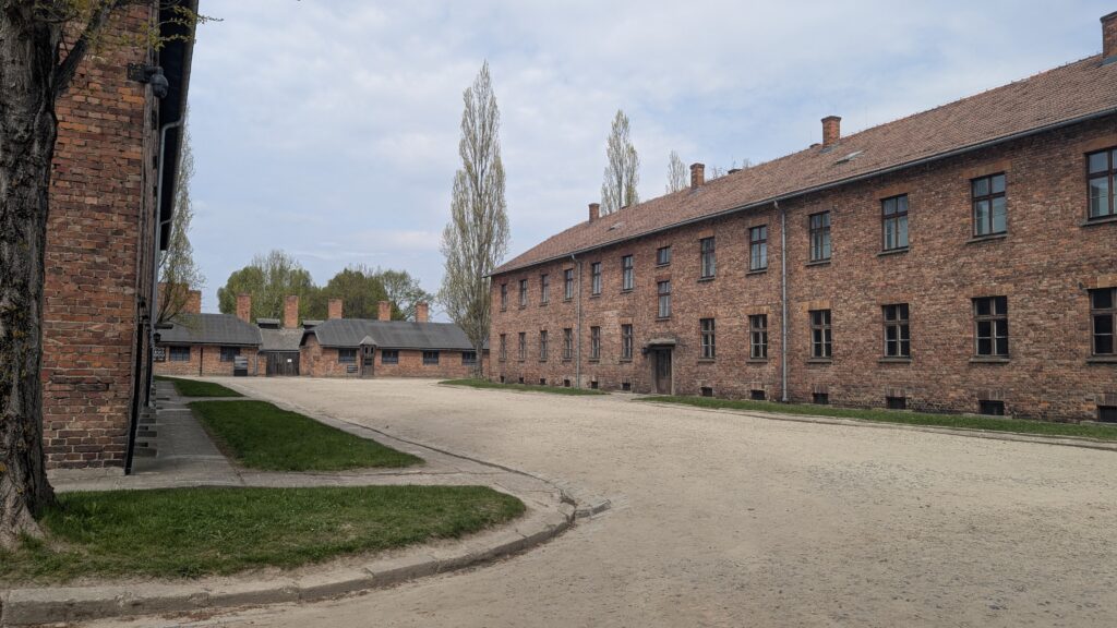 La visita termina, de nuevo, en la entrada de Auschwitz I, en nuestro caso sobre las 14:00. En este momento tenemos ya bastante hambre y pensamos que volver a Cracovia para comer va a ser demasiado rato.