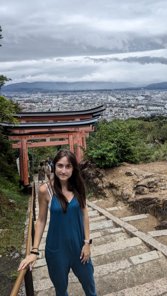 A mitad de camino hay un mirador desde donde hay vistas panorámicas de la ciudad de Kyoto.