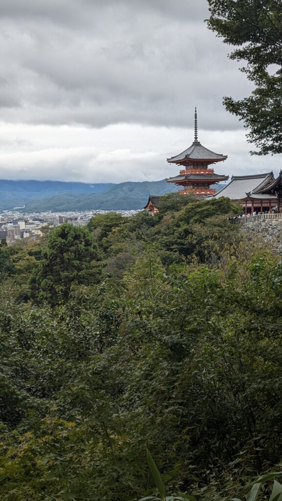 Este es uno de los templos budistas más emblemáticos de Kyoto, y se fundó en el siglo VIII. Declarado Patrimonio de la Humanidad por la UNESCO. Su nombre significa «Templo del Agua Pura», haciendo referencia a la cascada de Otowa que nace en la montaña donde se erige. Destaca por su gran terraza de madera, suspendida por una estructura de pilares, que ofrece vistas espectaculares de la ciudad.