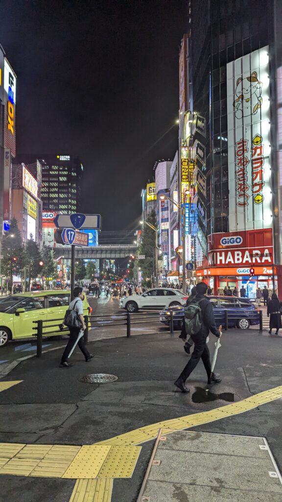 Cuando ya nos hemos instalado nos apetece salir a pasear un rato por la ciudad, que la echábamos de menos. Caminamos hasta la estación de Tokyo, y tenemos ganas de más, así que seguimos hasta Kanda, donde teníamos nuestro anterior hotel. En ese punto, decimos que por qué no seguimos un poquito más, y llegamos hasta Akihabara. En total una ruta de 3 km, que realmente nos sienta muy bien.