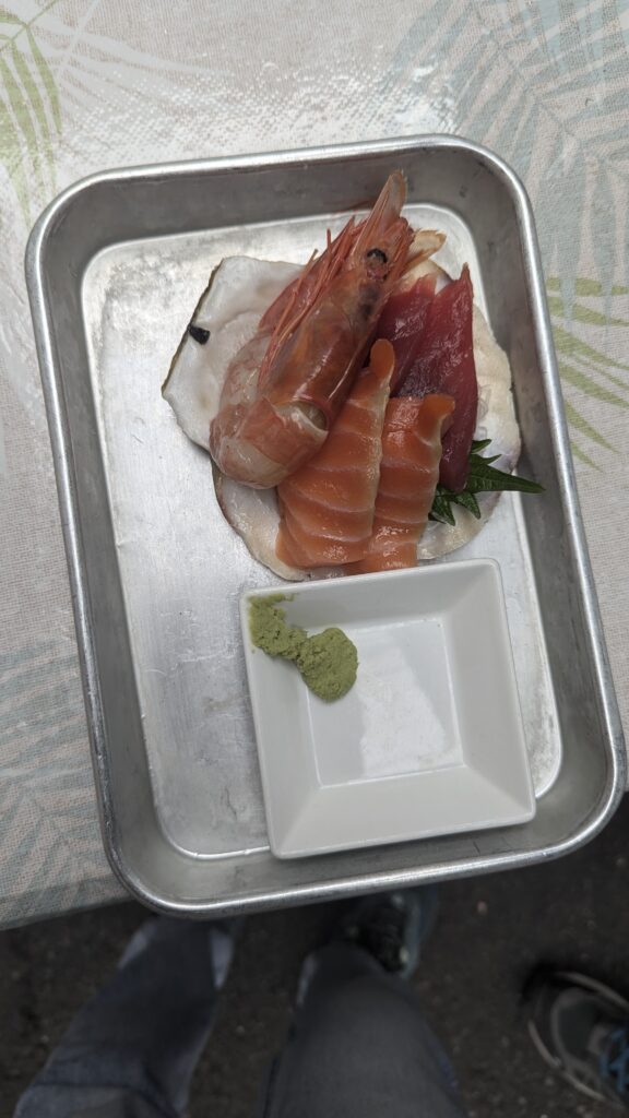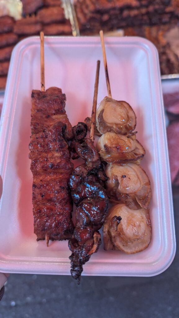 Aún así, probaremos algo de sushi y sashimi en Saito’s Fish Market, y unas brochetas de diferentes partes de la anguila que venden en Unagi Shokudo, que luego descubrimos que una de ellas son higadillos de anguila.