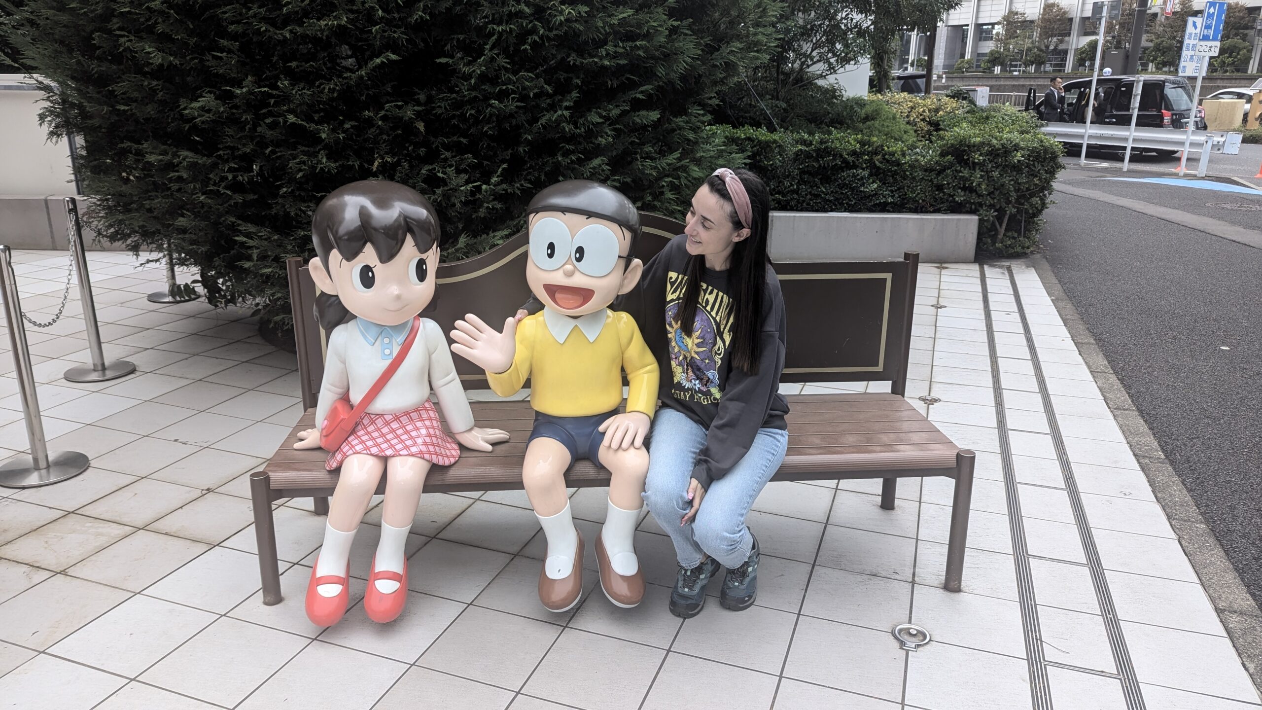 Con el bus, nos bajamos justo antes del puente que lleva a la Isla Odaiba, y vamos caminando desde allí. Por el camino hay un centro comercial donde visitamos la Lego Store. Más adelante está el DiverCity Tokyo Plaza, en el que vemos las figuras a tamaño real de Doraemon, y toda una tienda dedicada a este anime. Allí también se encuentra la famosa estatua de Gundam.