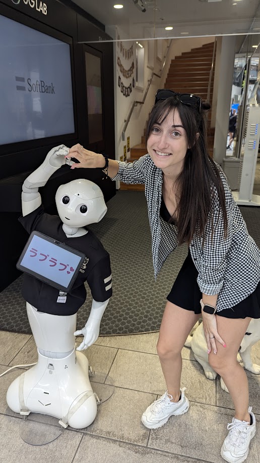 En el SoftBank que hay en la avenida, nos detenemos a interactuar con un simpático robot, que al parecer, nadie le estaba haciendo caso, y le podías pedir que hiciera diferentes posturas para hacerse fotos contigo.
