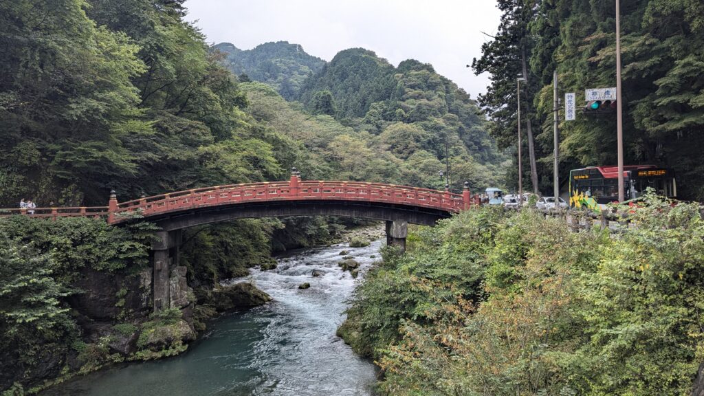 Seguidamente, bajamos hasta el puente Shinkyō, que se situa a la entrada del complejo del santuario. Este puente fue construido en el siglo XVII y atraviesa el río Daiya. Tiene una estructura de madera pintada de color rojo y es considerado uno de los tres puentes más bellos y sagrados de Japón y está declarado Patrimonio de la Humanidad por la UNESCO.