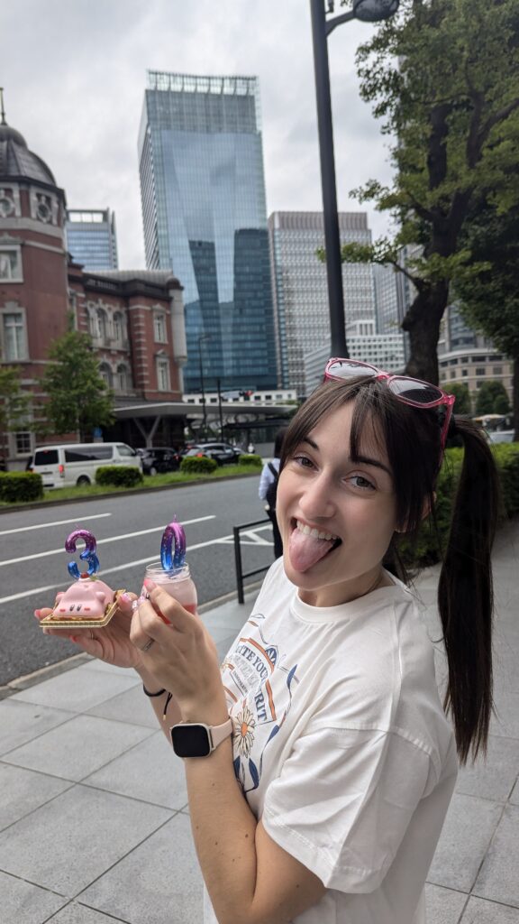 El objetivo es ir al Kirby Café Petit y comprar a modo de sorpresa unos pastelitos con la forma de Kirby, ya que hoy Lorena cumple 30 años, y aunque no lo sepa, he traído unas velas desde España. Por suerte, por la mañana no hay casi cola, y hay de todo. Un día intentamos venir por la tarde y ya estaba el aparador vacío.