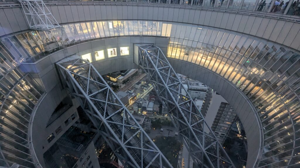 Como hoy queremos que sea un día más tranquilo, dedicamos la tarde a visitar el Umeda Sky Building en la zona de Umeda, ya que está apartado de todas las demás atracciones turísticas y hay que ir expresamente en metro.