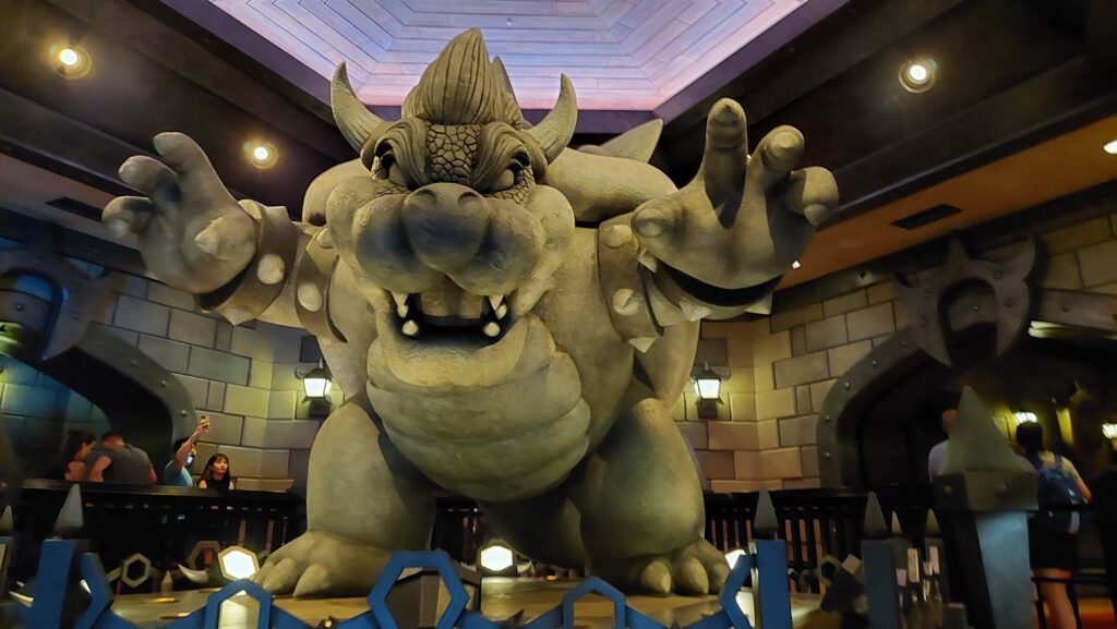 Nos subimos a la Mario Kart: Koopa’s Challenge, en la que tendremos unas gafas de realidad aumentada y podremos lanzar ataques a nuestros rivales para conseguir ganar una carrera. Esta atracción es muy divertida, y repetiríamos, pero la cola son unos 30 minutos.