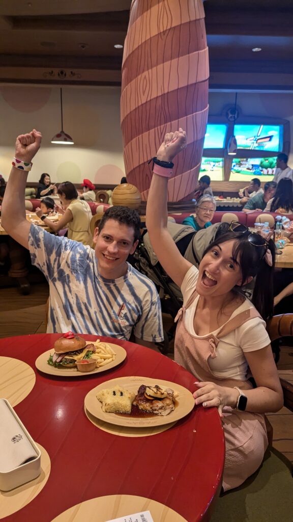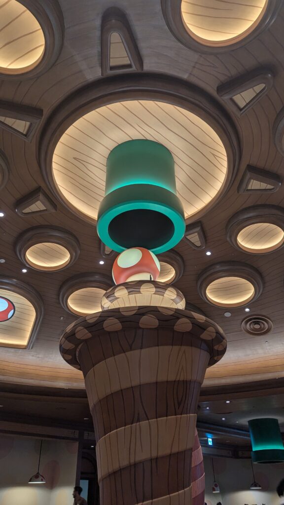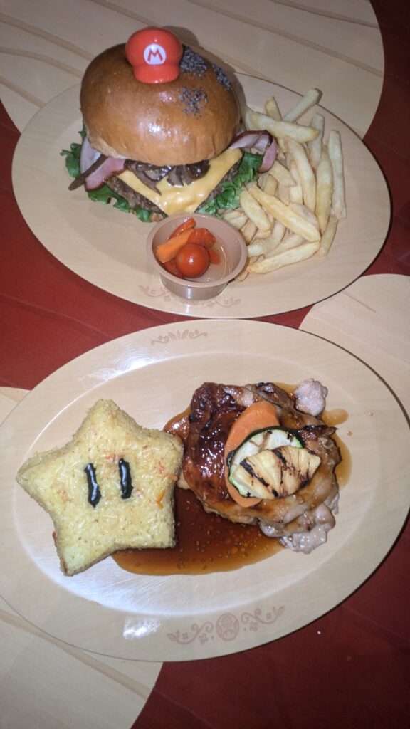 Se trata de un restaurante temático ambientado en la casa de Toad. Para comer hay opciones de hamburguesas y platos japoneses, todos con algún detalle que nos recuerda a los videojuegos de Mario.