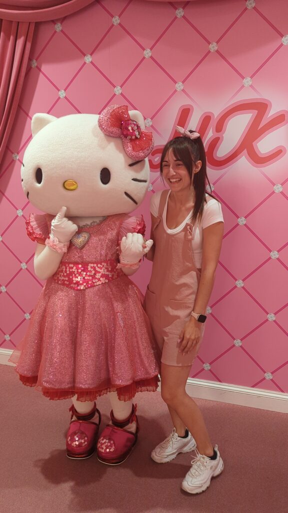 Fuera, me está esperando Lorena, y para compensar el rato, saldremos de la zona de Harry Potter y nos iremos hacia el Hello Kitty Design Studio, justo al lado, donde nos haremos algunas fotos con el personaje de Hello Kitty.