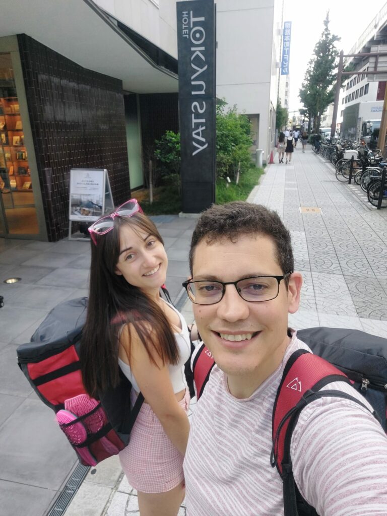 Recogemos nuestras cosas y seguimos de mochileo rumbo a la estación de Shin Osaka. Vamos con mochila porque desde hace tres días no tenemos nuestras maletas, al haberlas enviado con Takkyubin, y nos esperarán en Kyoto, pasado mañana.