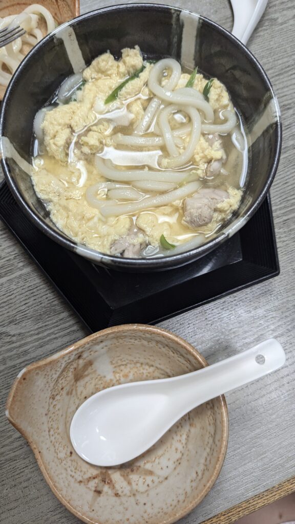 Para comer nos pedimos para compartir unas gyozas (400 yenes), un ramen (730 yenes) y nos dejamos recomendar por algo que definían como «plato de pollo con salsa espesa» (700 yenes). La verdad es que la cantidad fue más que suficiente, y todo estaba buenísimo. Además, nos sentimos como unos locales más.