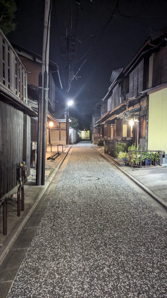 Por las cercanías, hay una zona residencial muy tradicional que no tiene nada que envidiarle al conocido barrio de Gion. Mucho mejor, de hecho, porque en todo el camino no nos cruzamos con ningún otro extranjero. De hecho, nos indican una calle exacta en la que se pueden ver geishas, pero no tenemos esa suerte.