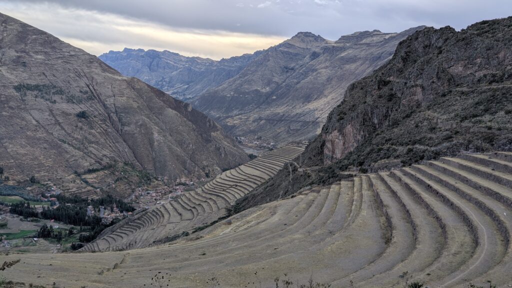 Dejando Ollantaytambo, la siguiente parada es Písac. Cuando llegamos ya está empezando a anochecer, y hace bastante frío y viento. Pero aún así, podemos entrar y ver la zona arqueológica, que contiene una enorme extensión de gradas agrícolas, por toda la montaña.